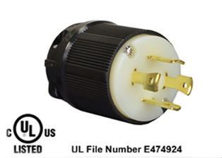 30 AMPERE-480 VOLT, 3 PHASE (X,Y,Z,+G) NEMA L16-30R LOCKING CONNECTOR. BLACK / WHITE.