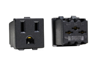 15A-125V NEMA 5-15R CONNECTOR, TYPE B, SPECIFICATION GRADE. BLACK/WHITE.