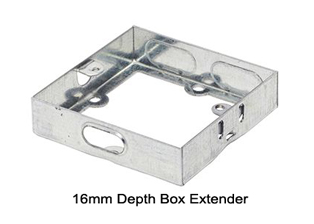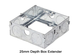 EUROPEAN, BRITISH, INTERNATIONAL ONE GANG GALVANIZED STEEL ELECTRICAL WALL BOX DEPTH EXTENDER,