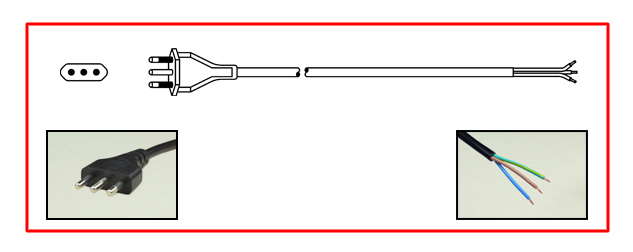 ITALIAN, ITALY, CHILE 10A-250V POWER SUPPLY CORD, TYPE L, CEI 23-50, CEI 23-16,( S11) (IT1-10P), STRIPPED ENDS, 3.05 METERS (10 FEET) (120") LONG. BLACK.